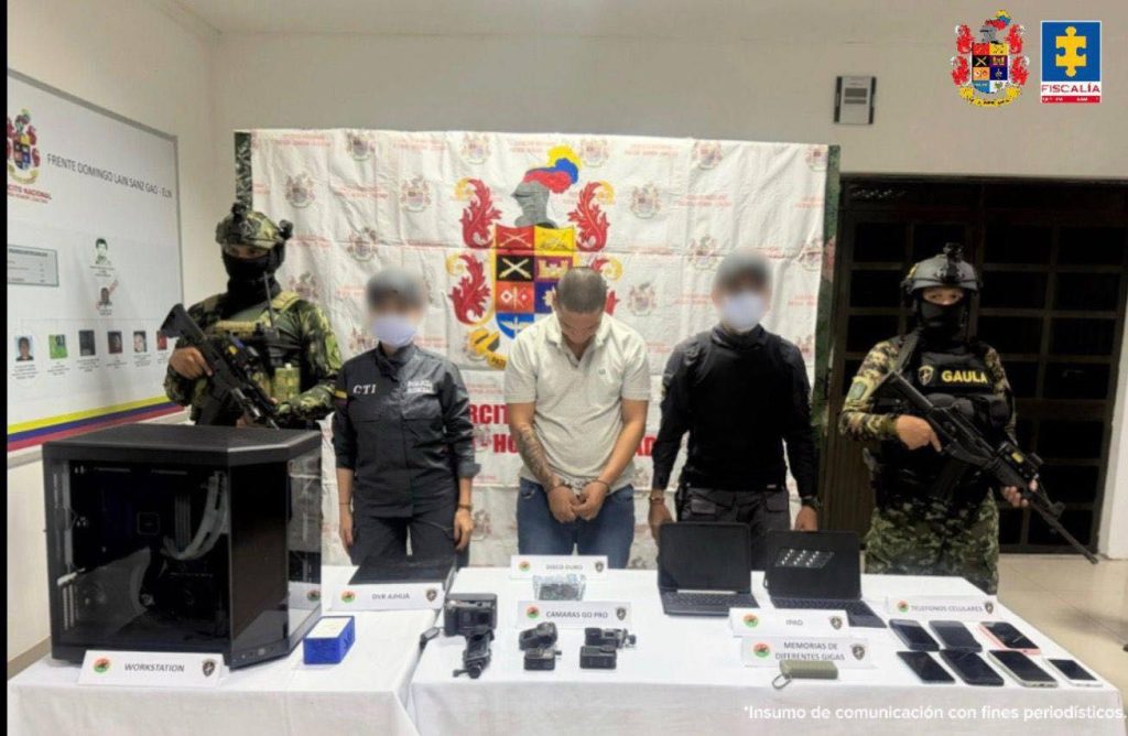La Fiscalía General de la Nación capturó a Deinner Fabián Alvarado Salazar, señalado de vender drones y capacitar a integrantes de la comisión Ernesto ‘Che’ Guevara del ELN para usarlos en ataques terroristas en Arauca.