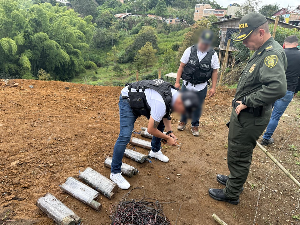 El hecho se registró en la mañana del 5 de marzo de 2025, en el sector Don Berna – de la Vereda Torres, donde un grupo especial de policías detectó una motocicleta abandonada en la vía pública. Frente a ella, camuflados como desechos, se encontraron siete cilindros metálicos con cables y líneas de mando conectadas a un iniciador eléctrico, cargados con nitrato de amonio, un explosivo de alto poder destructivo.