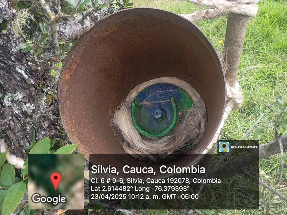 Disidencias armadas abandonaron dos cilindros de 40 libras cargados con explosivos y dispuestos en un sistema de lanzamiento tipo rampa, con la clara intención de atacar las instalaciones de la estación de Policía local.