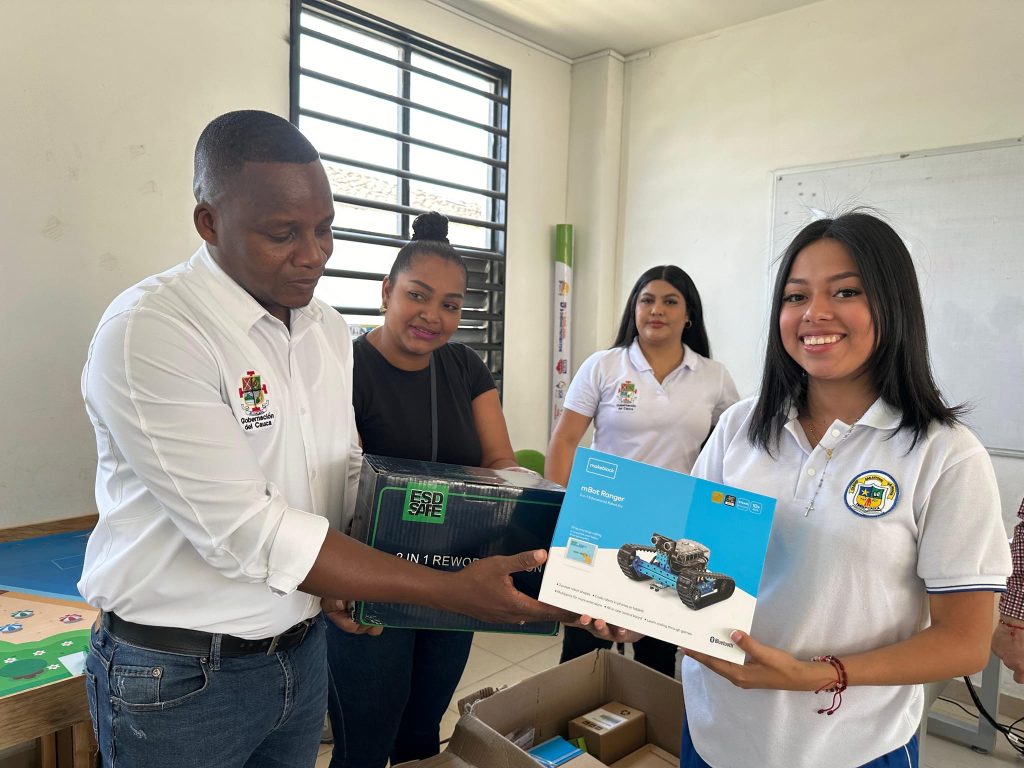 Por su parte, Wilson Fernando Orozco Velasco, Rector de la IE San Antonio de Padua de Timbío, expresó su agradecimiento por la dotación recibida: “es un apoyo fundamental para las aulas STEAM, en las cuales hemos estado desarrollando proyectos tecnológicos que nos permitieron ganar un concurso de robótica a nivel nacional. (…) No los defraudaremos y seguiremos impulsando el proyecto de vida de nuestros estudiantes de la mano de la tecnología y del Gobierno Departamental”.