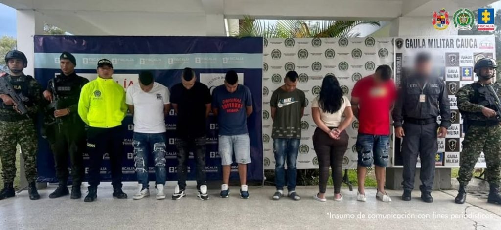 Estas personas fueron capturadas por servidores del Cuerpo Técnico de Investigación (CTI), con apoyo de uniformados de la Policía Nacional y soldados del Ejército, en varios sectores de Popayán y Cali (Valle del Cauca).