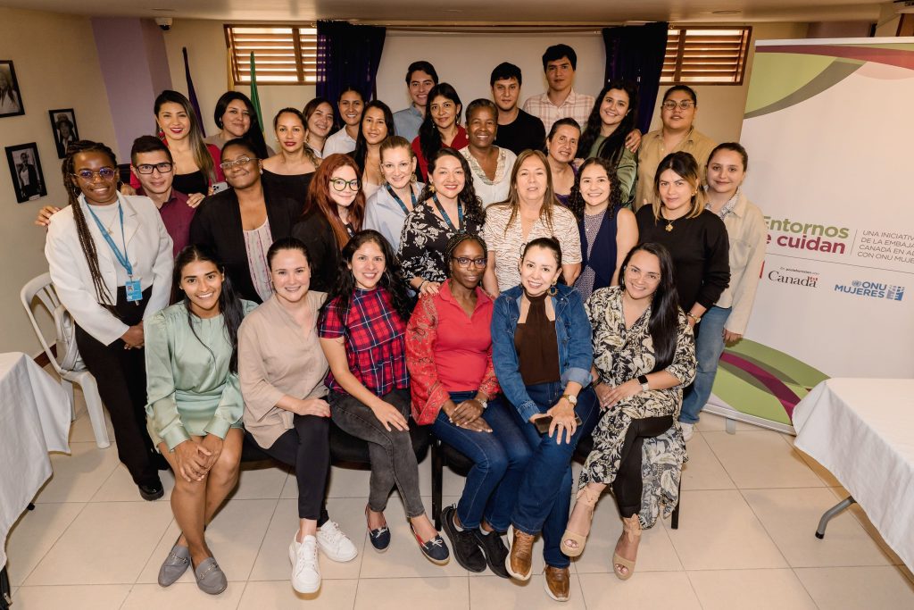 En el marco del proyecto “Entornos que Cuidan” de ONU Mujeres Colombia, y en alianza con la Embajada de Canadá y el Ministerio de Igualdad y Equidad, la Gobernación del Cauca se ha comprometido a mejorar las condiciones de vida de las mujeres cuidadoras no remuneradas en siete municipios del departamento, tales como, Santander de Quilichao, Popayán, Patía, Caldono, Guapi, La vega y Páez.