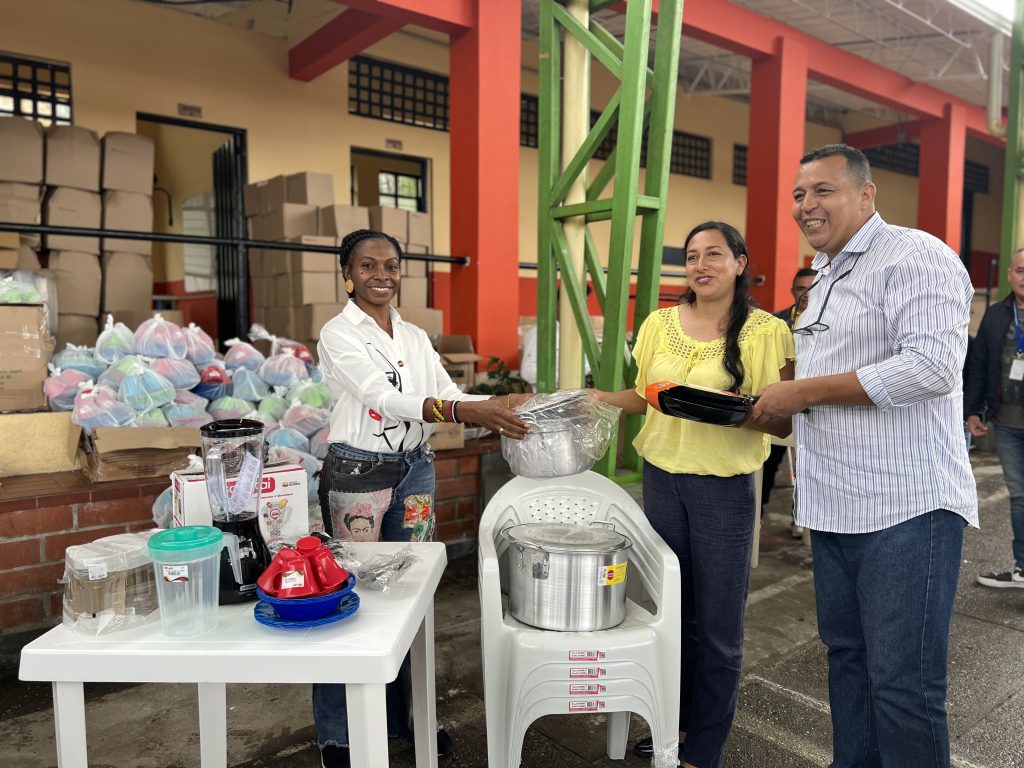 La entrega de kits que incluyen, mesas, sillas, licuadoras, ollas, cubiertos, platos, entre otros utensilios les permitirán potenciar sus unidades productivas, de igual manera reciben formación para diseñar planes de negocio y retomar sus emprendimientos, como base de la economía en sus núcleos familiares.
